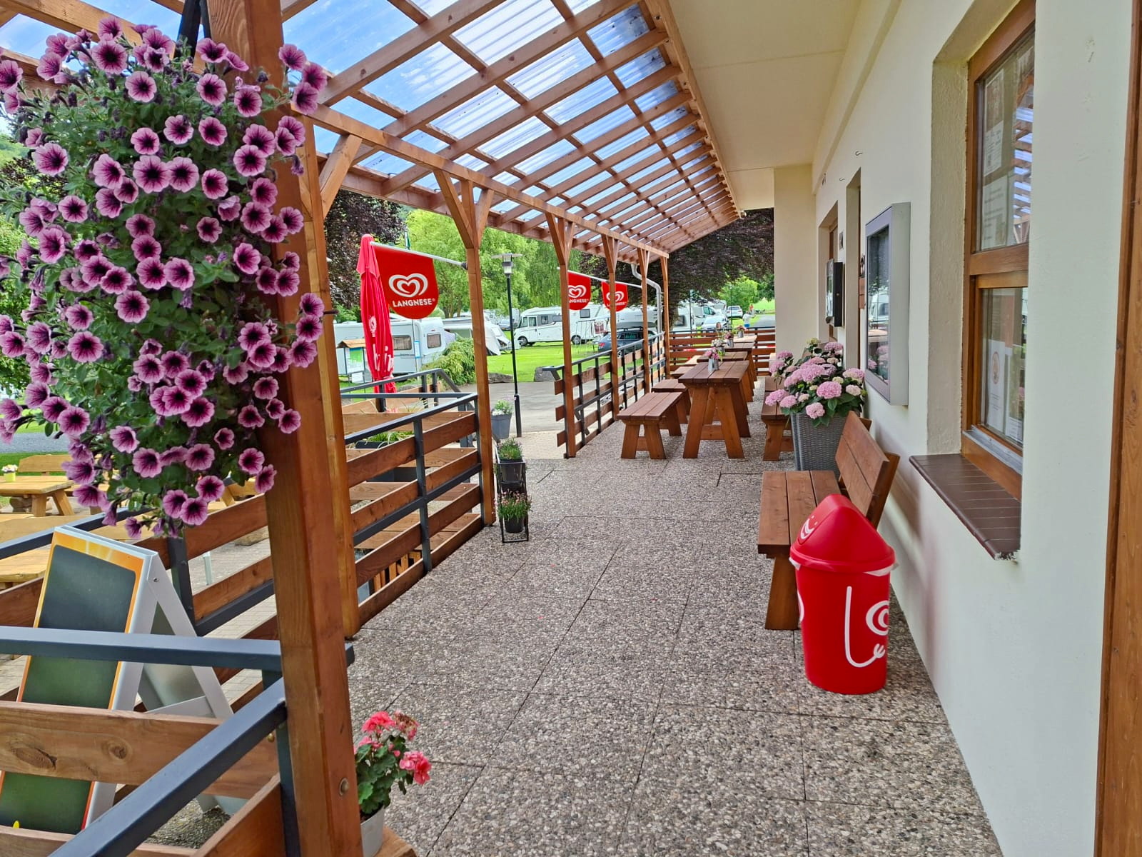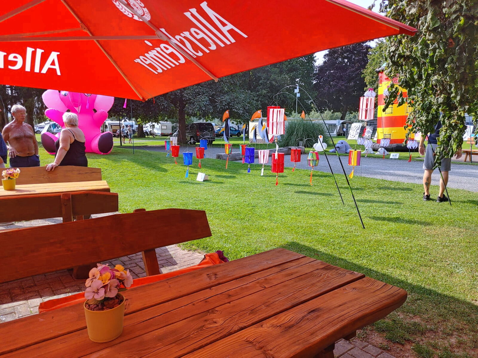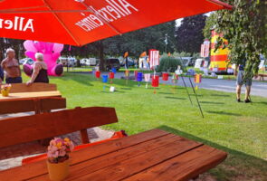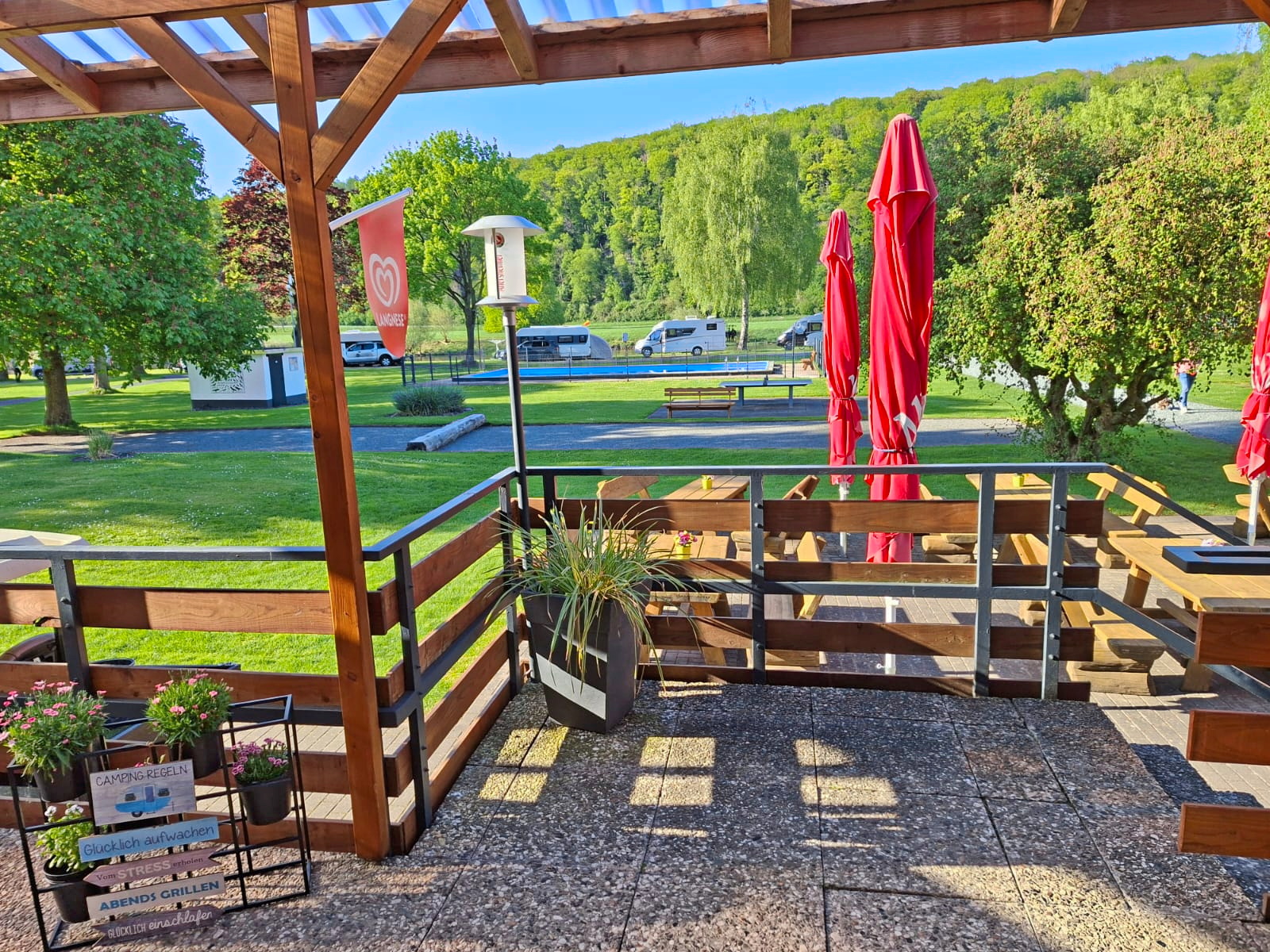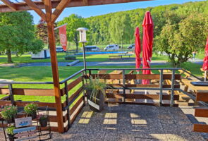 Jeden Morgen bieten wir Ihnen unseren Frische-Brötchen-Service und in unserem Café oder auf der Terrasse mit „Weser-Blick“ genießen Sie einen leckeren Kaffee, ein gutes Glas Wein oder frisch gezapftes, erfrischendes Glas Bier von der regionalen Allersheimer Brauerei…